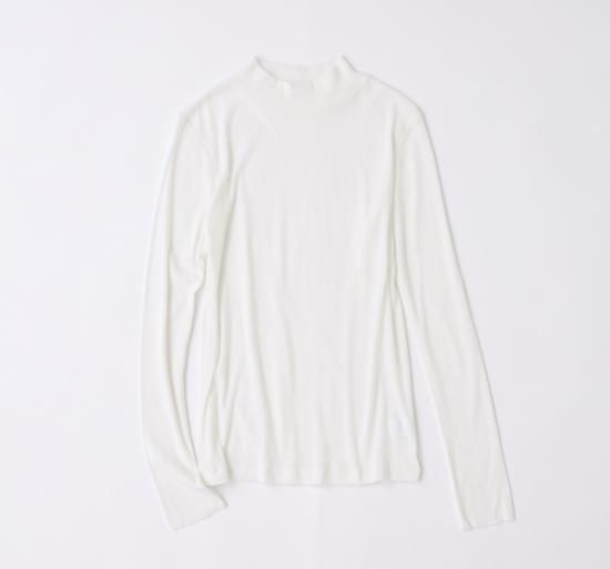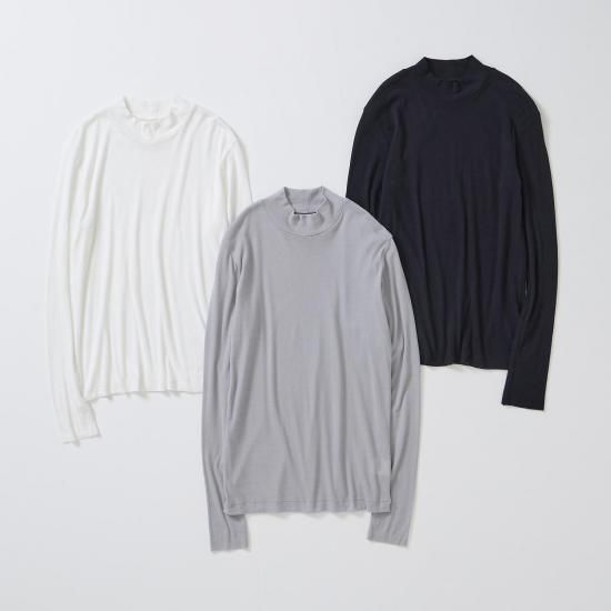 シャリ感のあるさらりとした肌触りの強撚コットンニット生地を使用した、薄手のモックネックカットソーです。