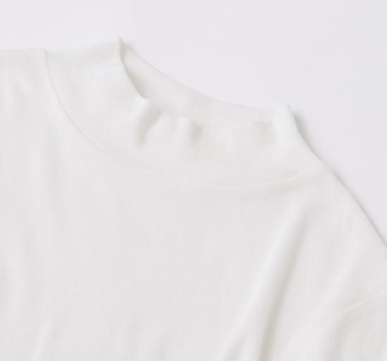 ハイネックよりも首元が低く、首全体を包み込まず程よく肌が見えることで、お首回りもすっきりとした印象に。