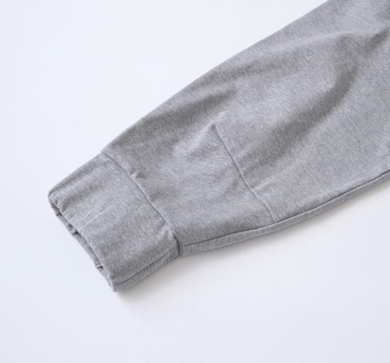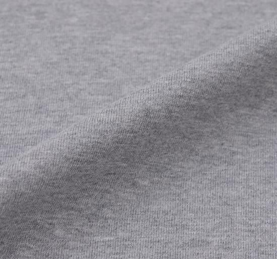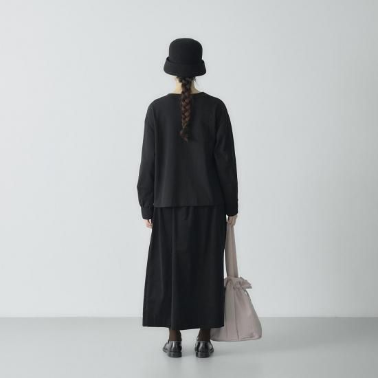 程よい開きのクルーネックで前身頃の襟元は見返しをつけてすっきりと仕上げ、後身頃は伸縮の良いフライスをつけて着脱しやすく仕上げました。