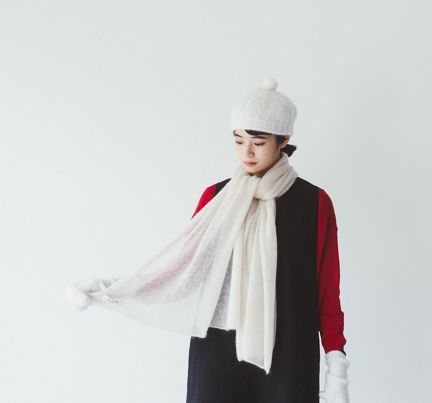 薄手なので巻くとおさまりが良く、柔らかさが可愛らしい雰囲気に。