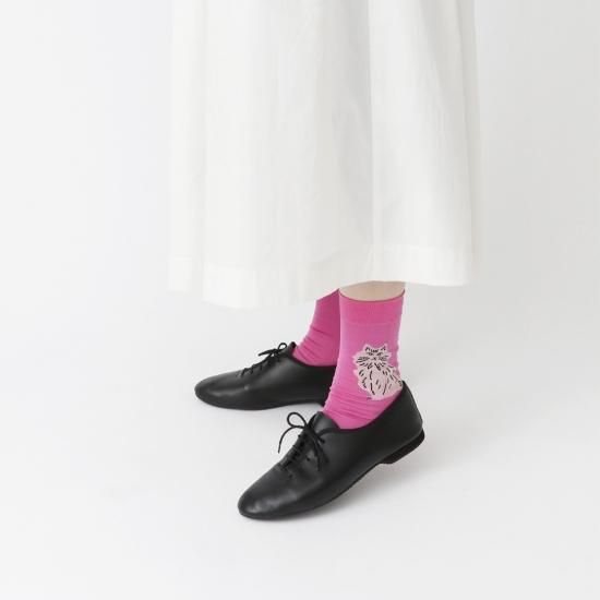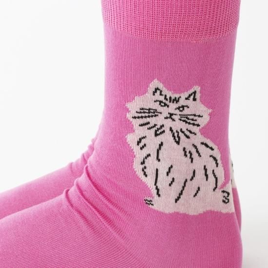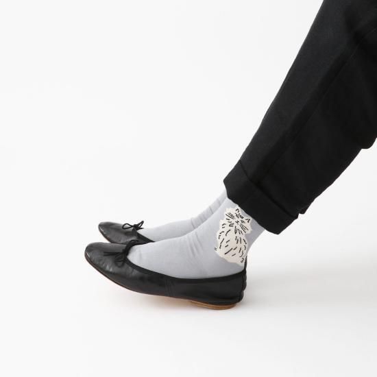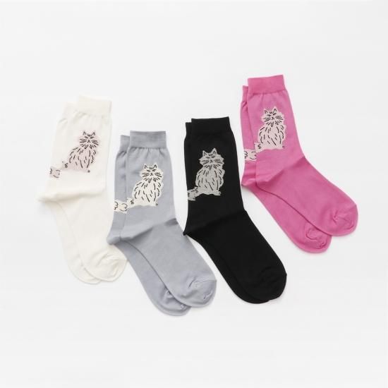 毛足が長くふわふわでエレガントな、いつまでも眺めていたいチンチラ柄のソックスです。ベースはガス焼処理により毛羽を抑えた最高級のエジプト綿で編み立てました。毛長の猫好きにはたまらない1足です。