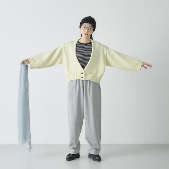 短めの着丈でボトムスとバランスがとりやすく、パンツ・スカートはもちろん、ワンピースとも好相性。