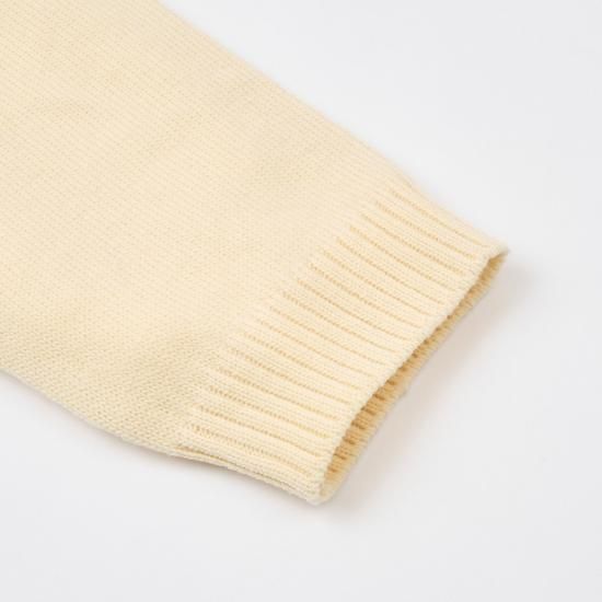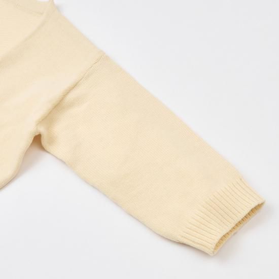 袖丈は秋冬らしく少し長めに仕上げました。袖口と裾の長めのリブ編みがアクセントに。