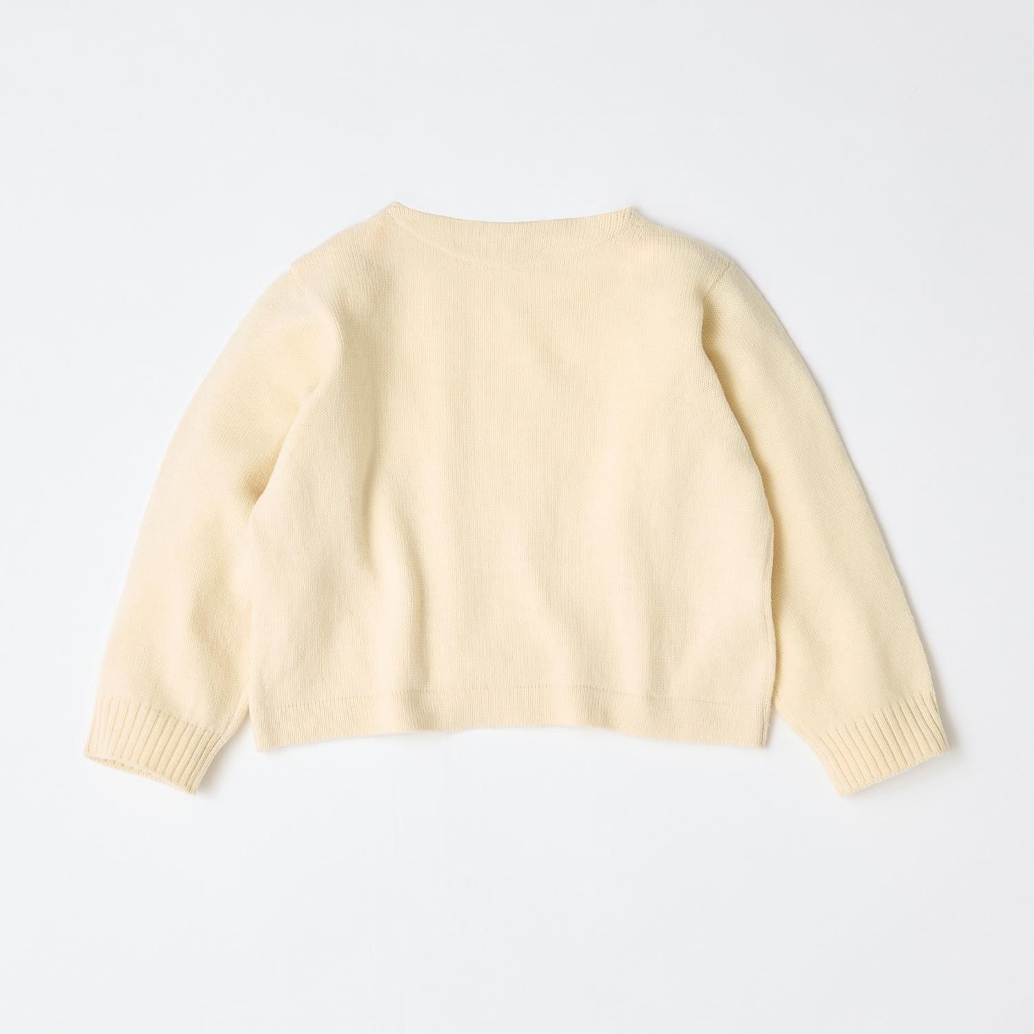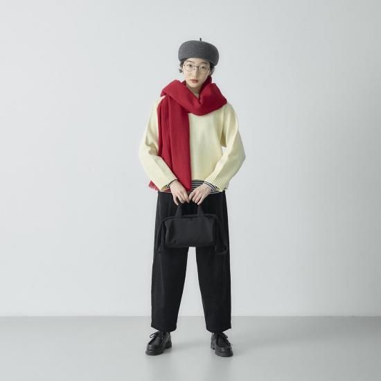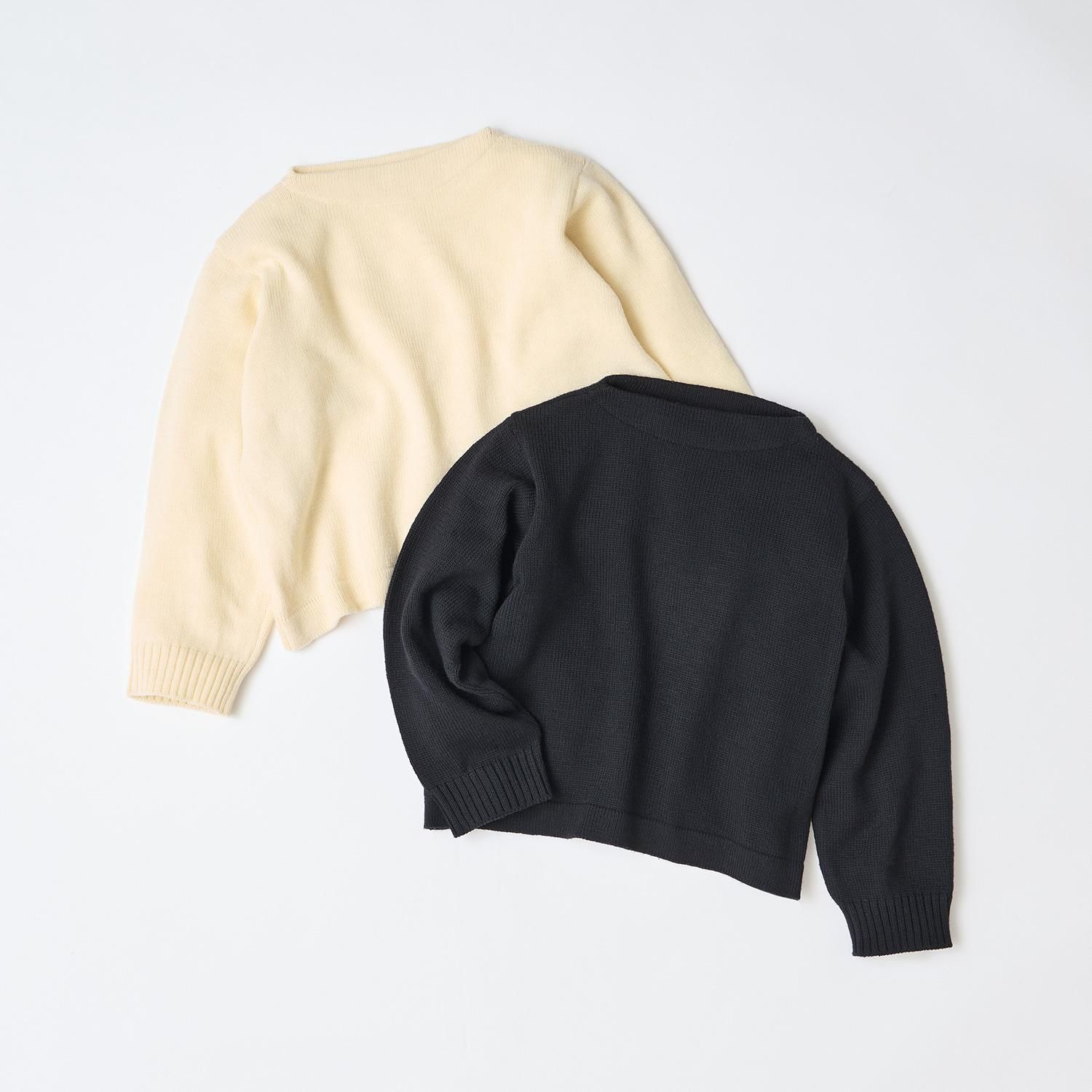 軽くてふんわりと柔らかく膨らみがあって暖かく、保温性に優れているフレンチメリノウール糸で編み立てたボートネックのセーターです。