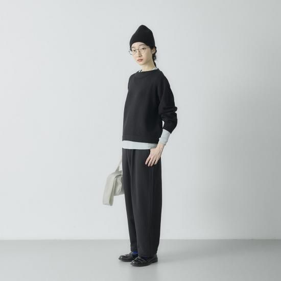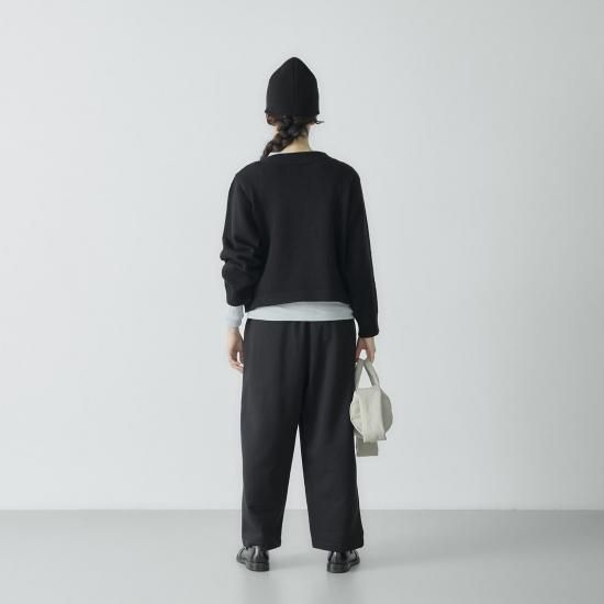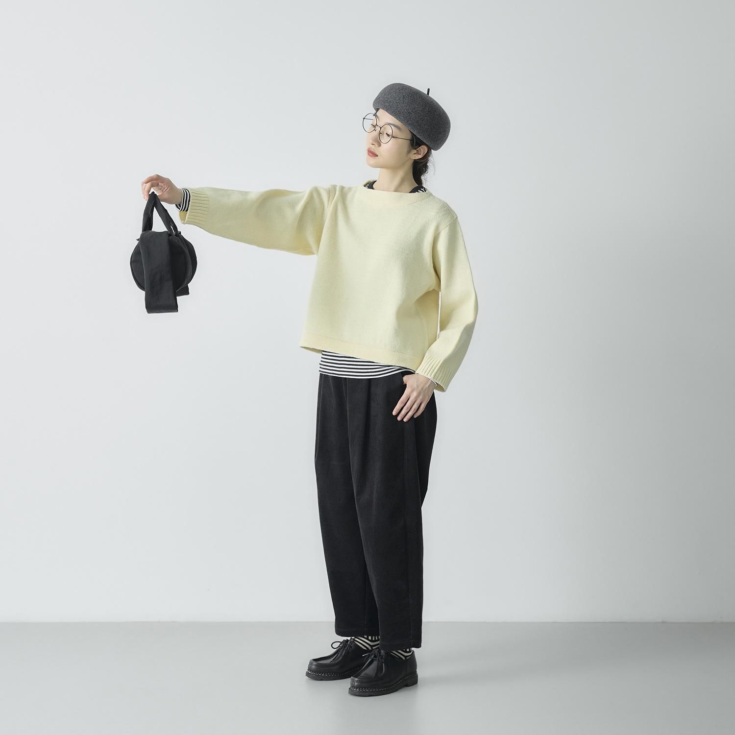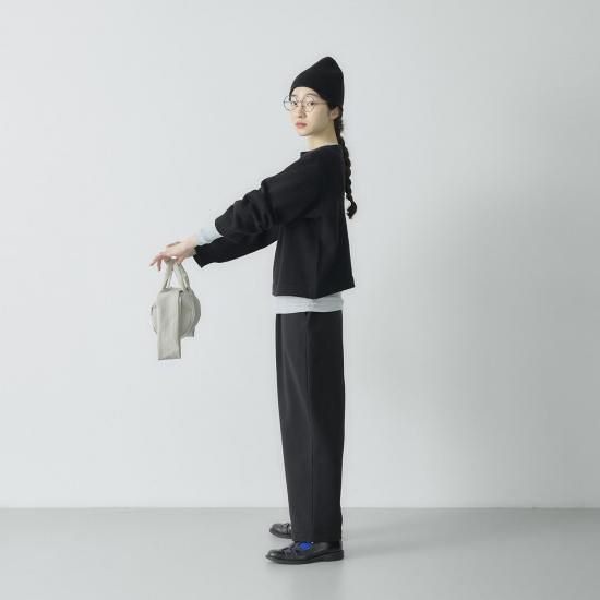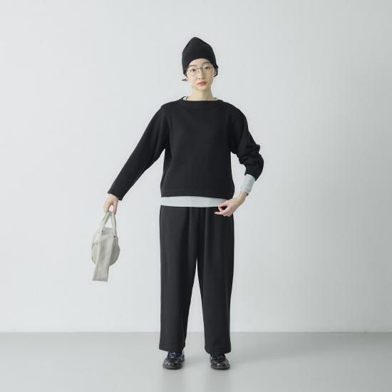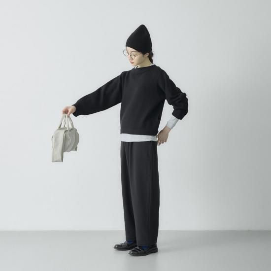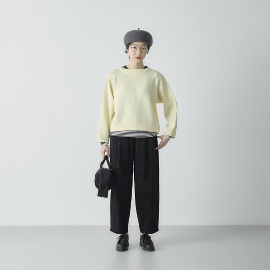 ポイントは膨らみが出るよう仕上げたボートネック。 程よいワイドな身幅で前後差のないショート丈に仕上げました。 ワイドパンツやスカートなど、ボリューム感のあるボトムともバランスがとりやすく、すっきりとした印象に。
