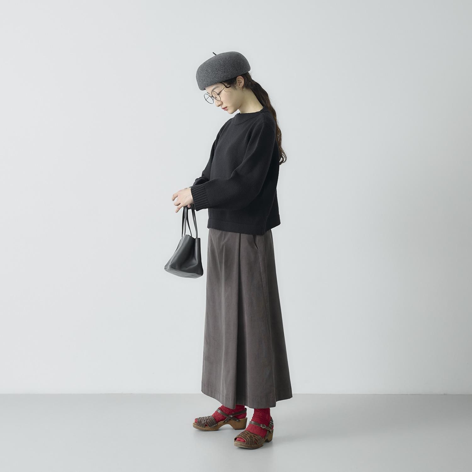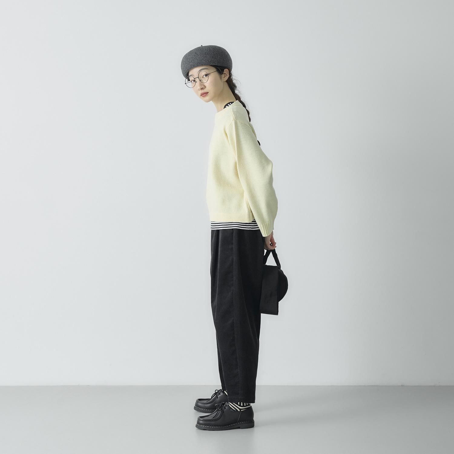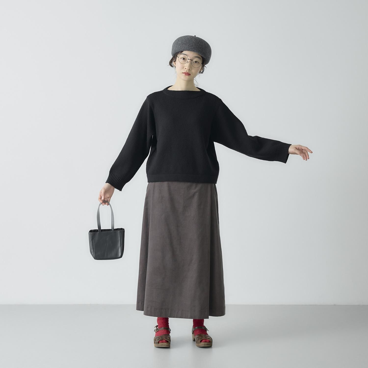 ポイントは膨らみが出るよう仕上げたボートネック。 程よいワイドな身幅で前後差のないショート丈に仕上げました。 ワイドパンツやスカートなど、ボリューム感のあるボトムともバランスがとりやすく、すっきりとした印象に。