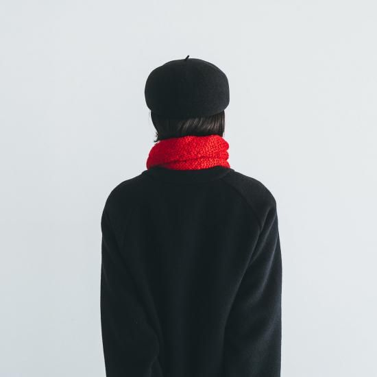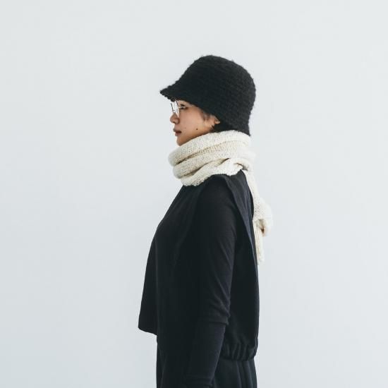 スラブ感のある太いウール糸のざっくり感が表情豊かで、シンプルながらも存在感があります。