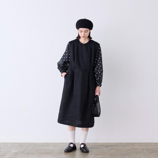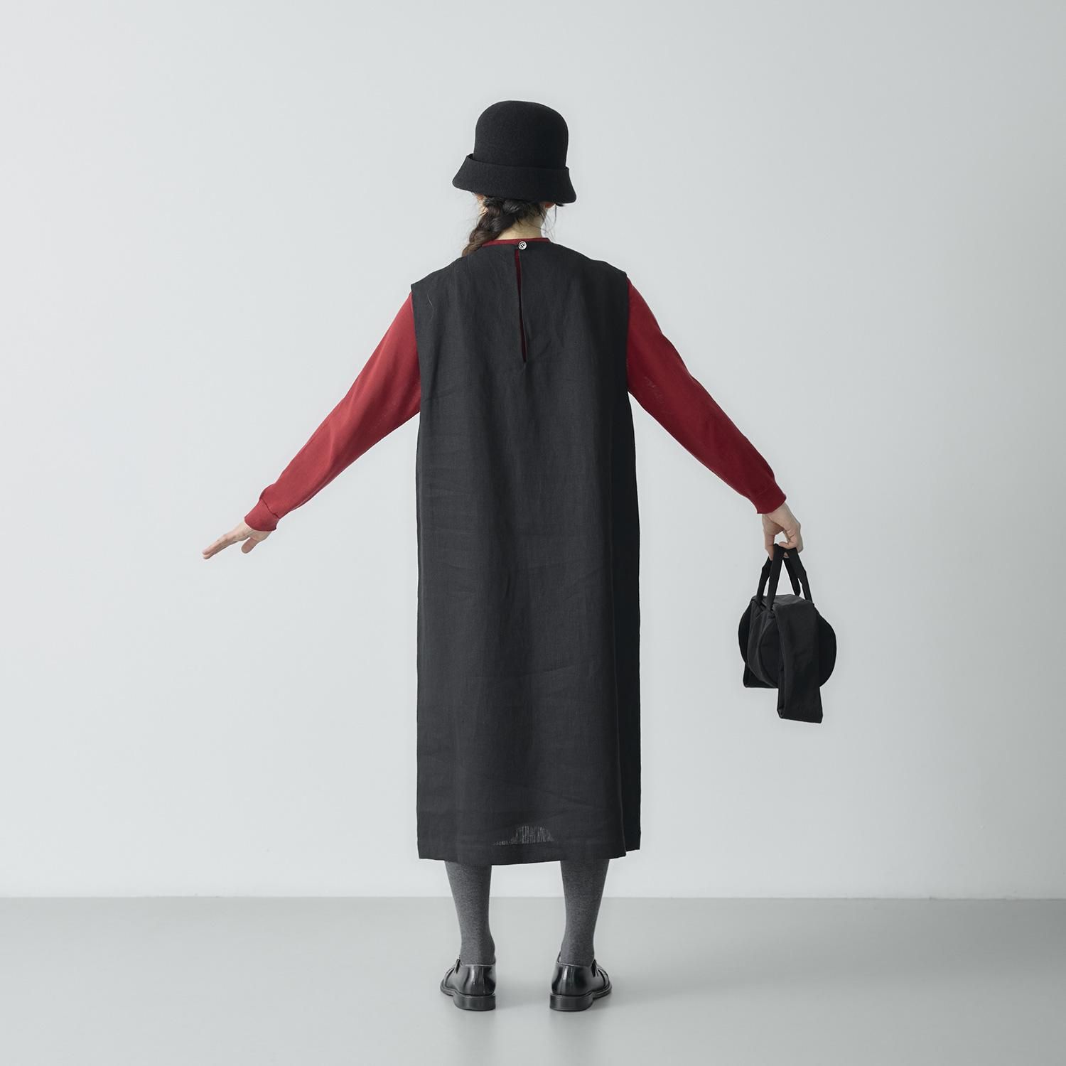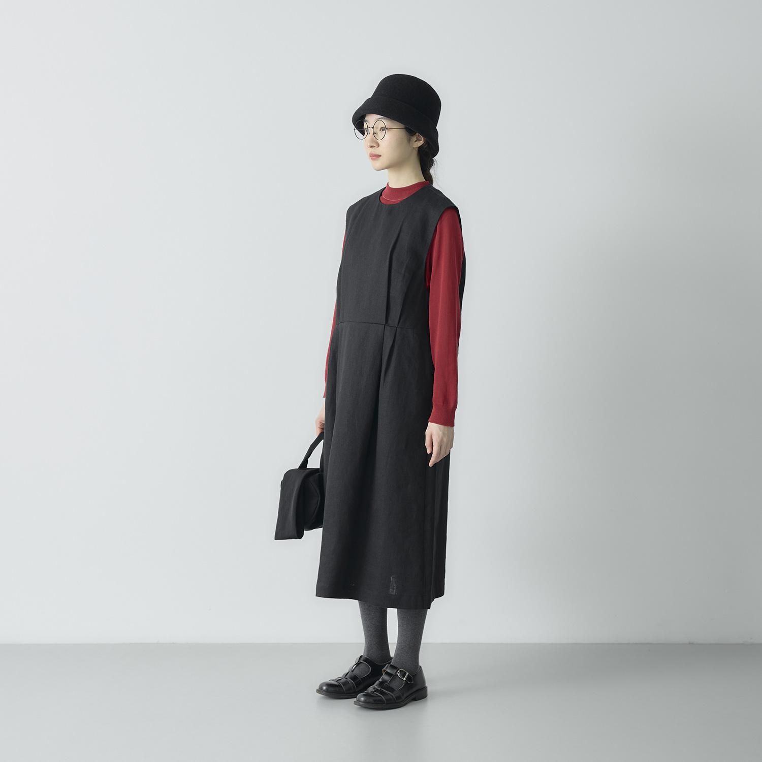 上品な光沢感とヴィンテージな風合いのある、程良い厚みのリネンツイル生地を使用したワンピースです。