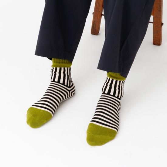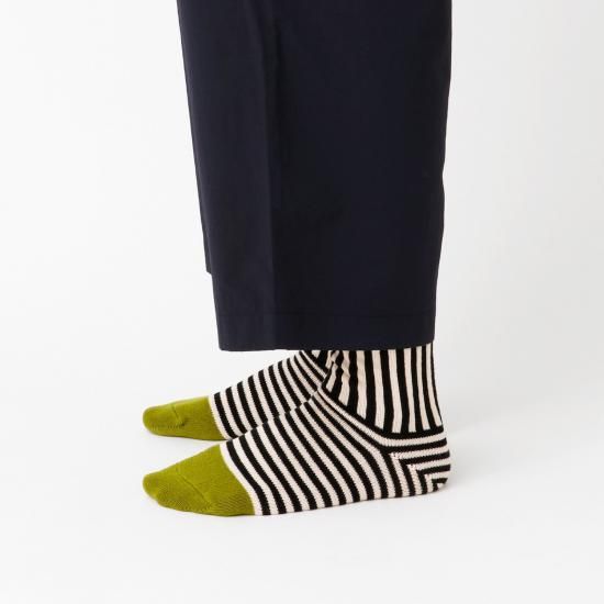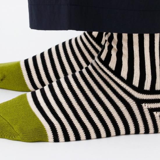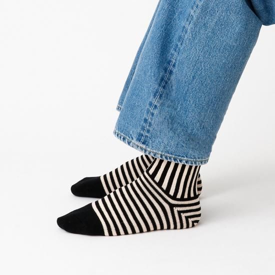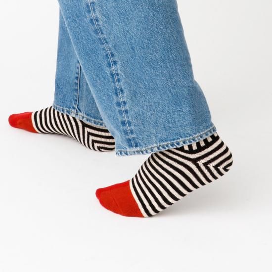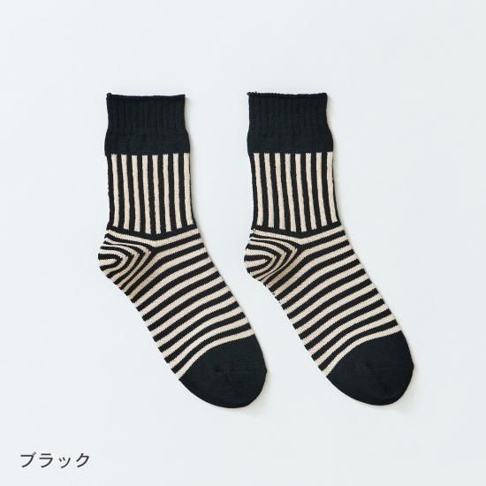 ブラック×ホワイトのストライプとボーダーで階段をイメージしたソックスです。