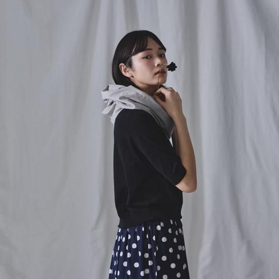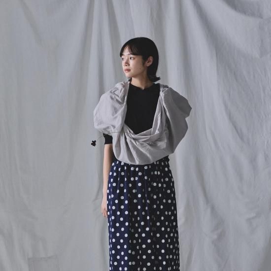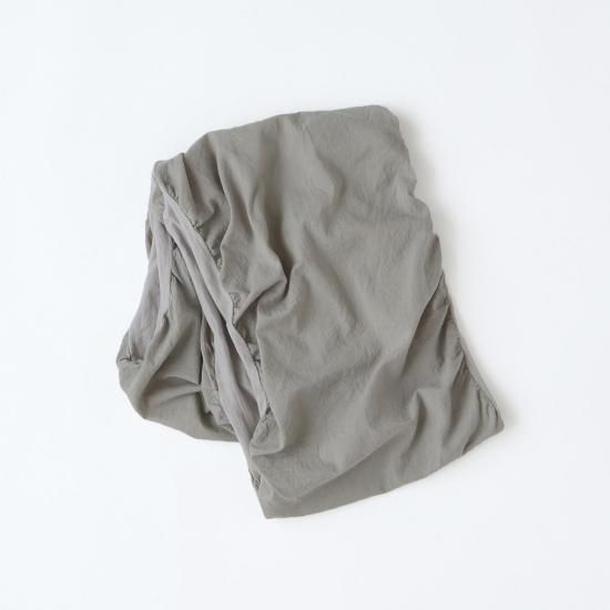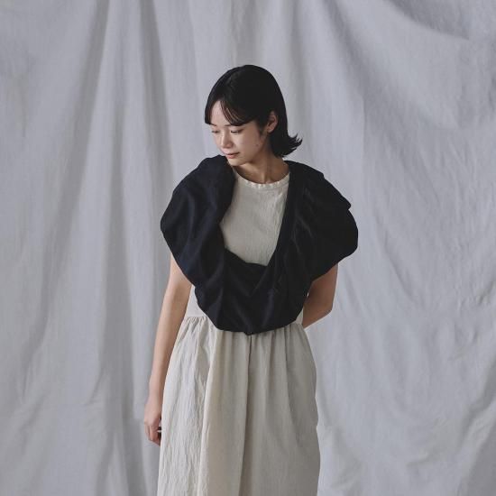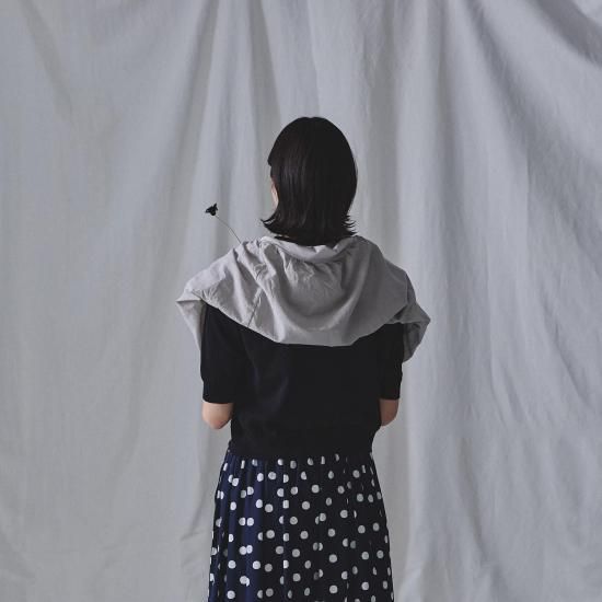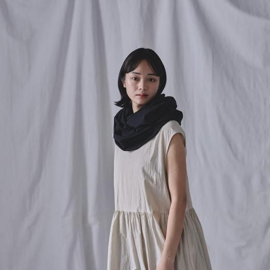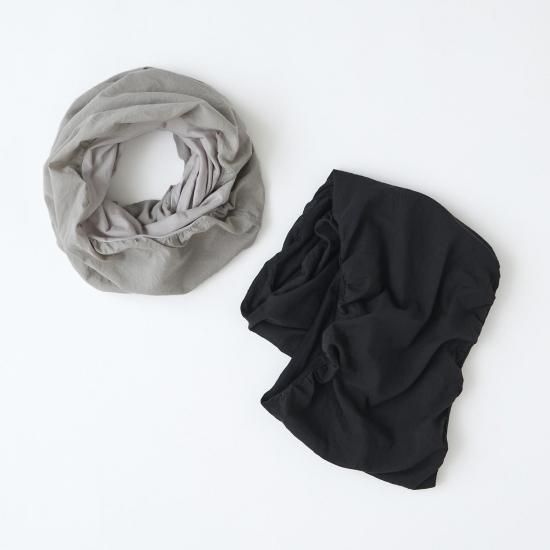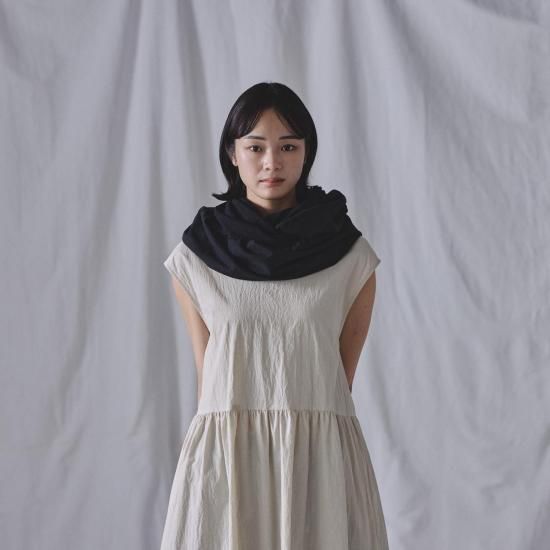 ギャザーを寄せた薄いコットン生地と、薄めのコットンニット生地を合わせて膨らみを持たせたスヌードです。