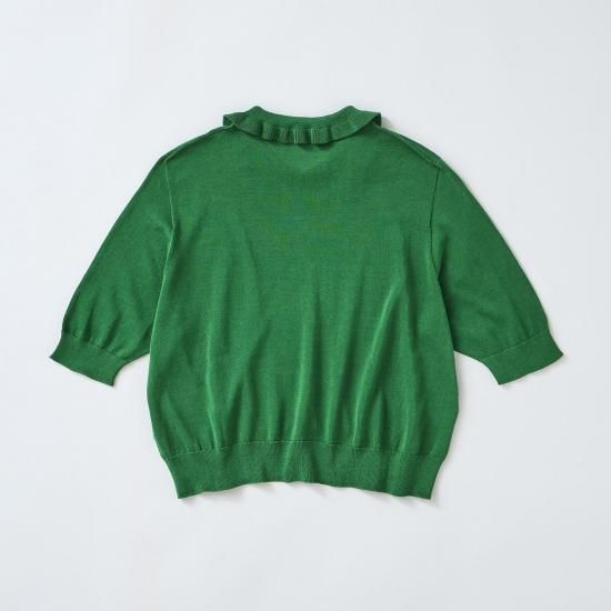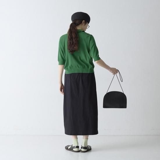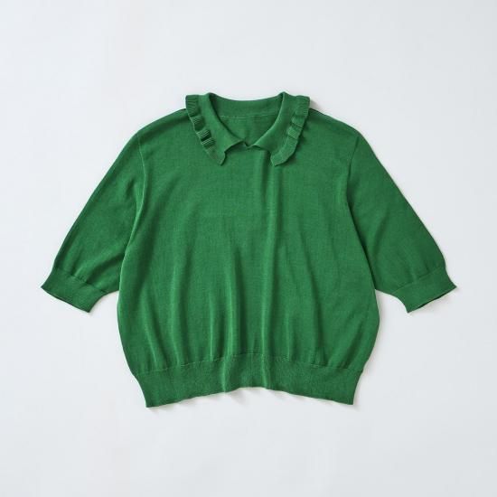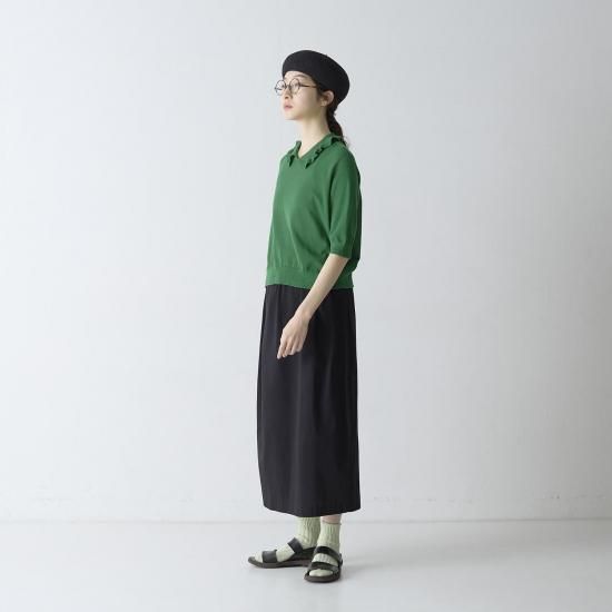 微かな光沢感のある毛羽を抑えた強撚のコットンで編み立てたポロニットです。