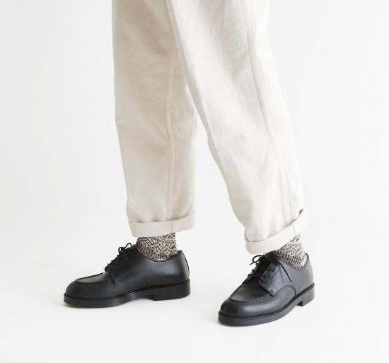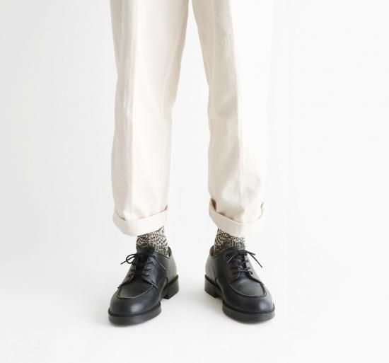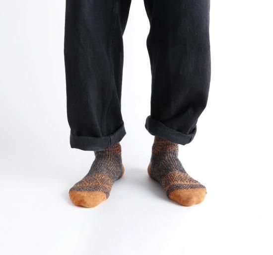 | 注意事項 | ・French Bull・jake・Cionの製品は、綿・麻・ウールなど天然繊維を多く使用しています。 そのため、素材や色によって長さや幅に個体差が出る場合がございます。 ・靴下の特性上、色や柄の切り替え部分や、履き口のゴム部分は糸の端末が裏側に出ています。 着用やお洗濯によって、この糸端が表に飛び出してしまうことがあります。 この糸を切ってしまうと、ほつれの原因になりますので、切らずに内側へ入れ込んでください。 |