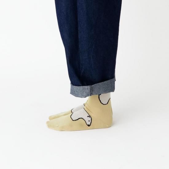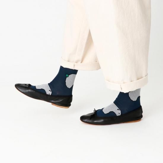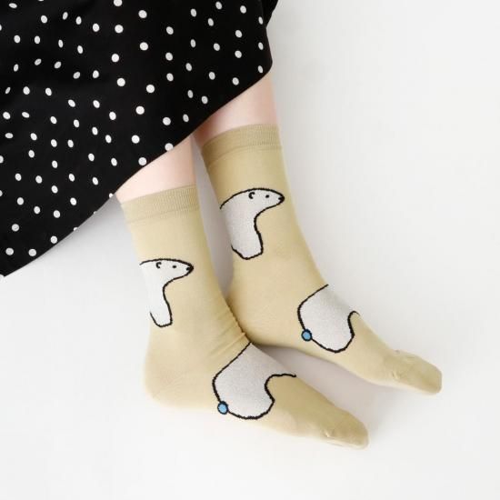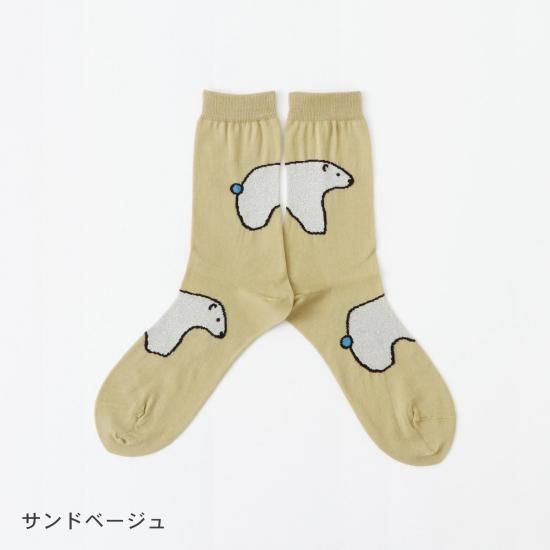 手書きのようなラフさが楽しげでかわいい、しろくま柄ソックスです。