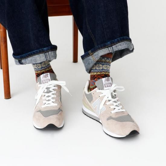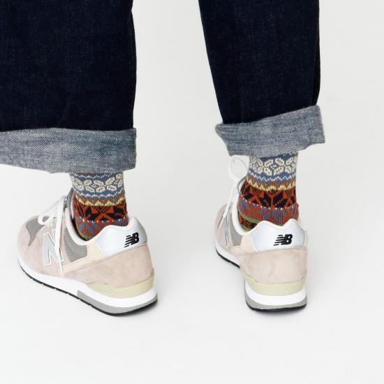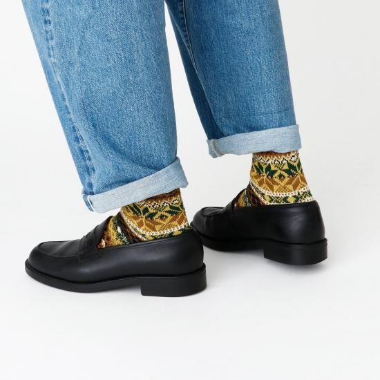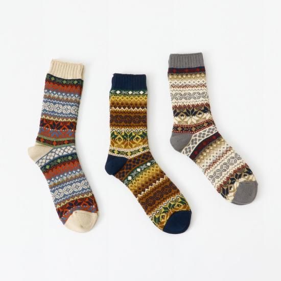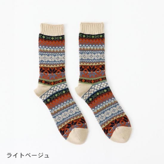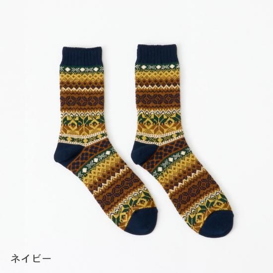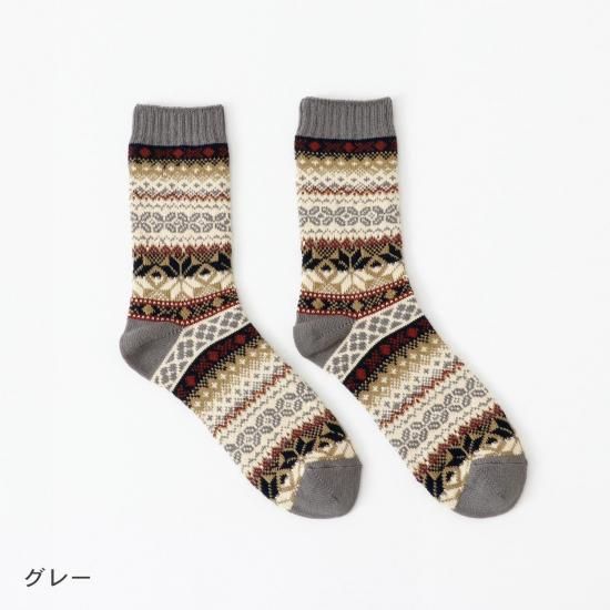 雪の結晶や落ち葉をイメージした、ノルディックな雰囲気が魅力のソックス。