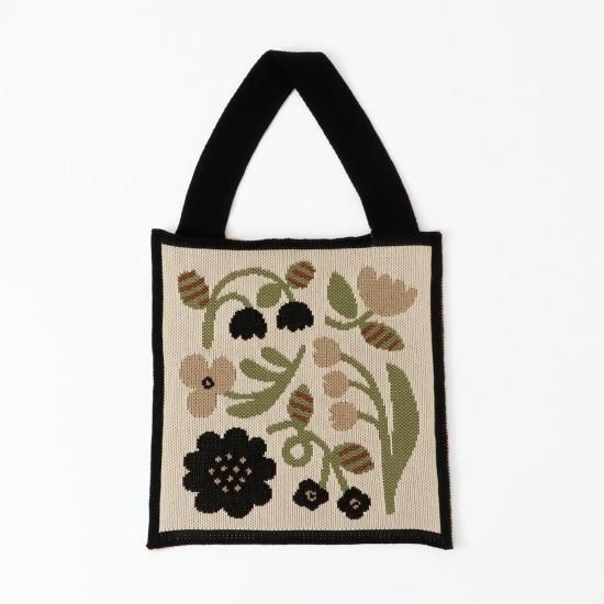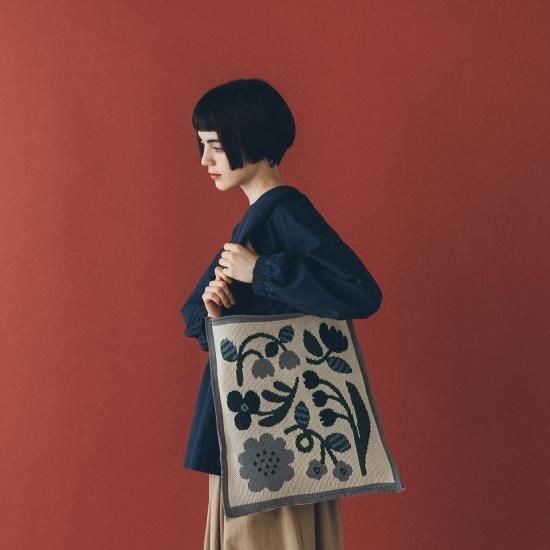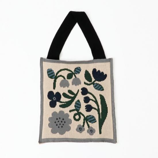 綿糸で度詰めに編み立てた、ジャガード柄のニットショルダーバッグです。