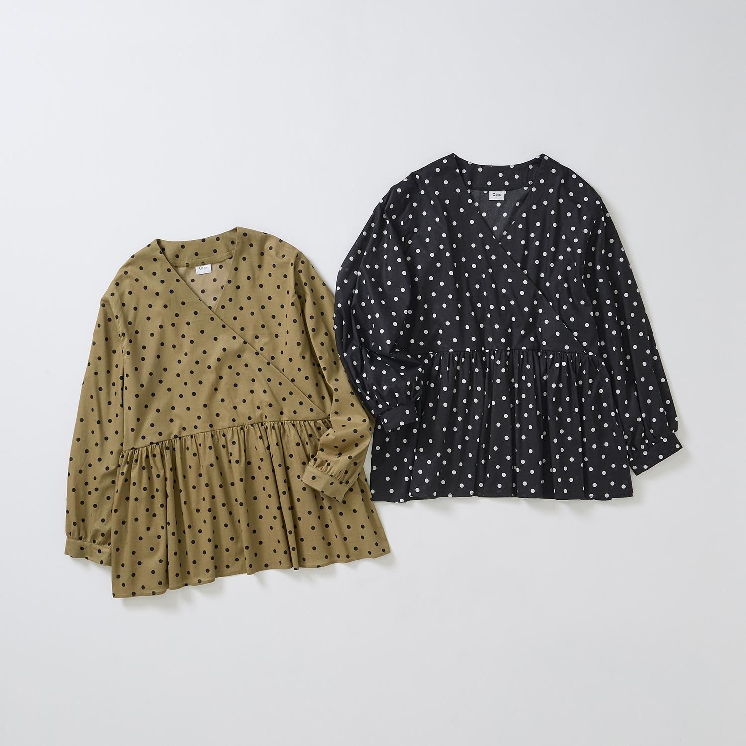 ドット柄を引き立てるシンプルなシルエットで、デイリーからお出かけシーンまで幅広い着こなしを楽しめます。
