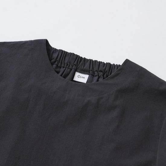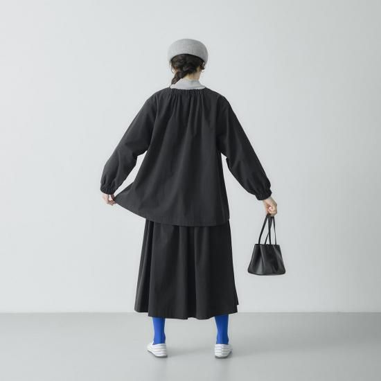 袖口と後ろ襟にゴムを入れ、ギャザーを寄せて落ち感とボリュームを出しました。