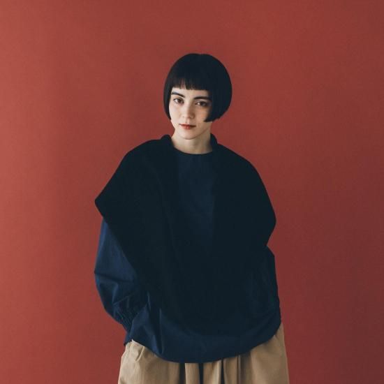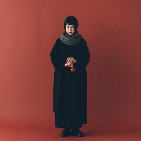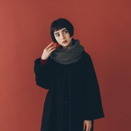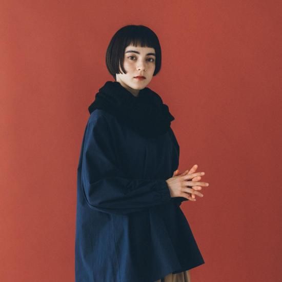 エアリーウール混の梨地生地と薄いコットンニット生地を合わせたスヌードです。