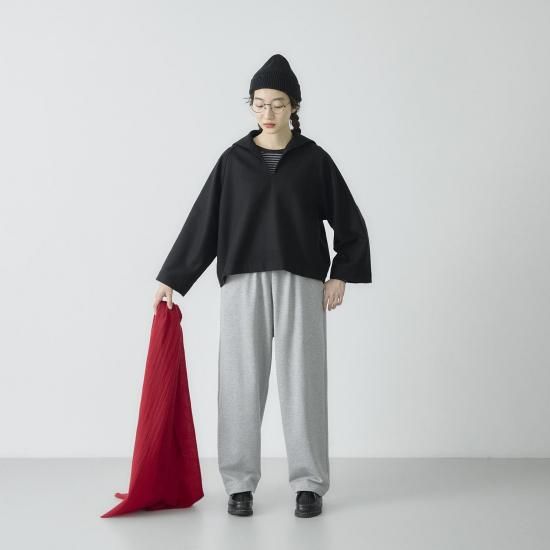 身体のラインを拾わないボリュームのあるシルエットで、こなれ感のある大人のスウェットコーデを楽しめます。
