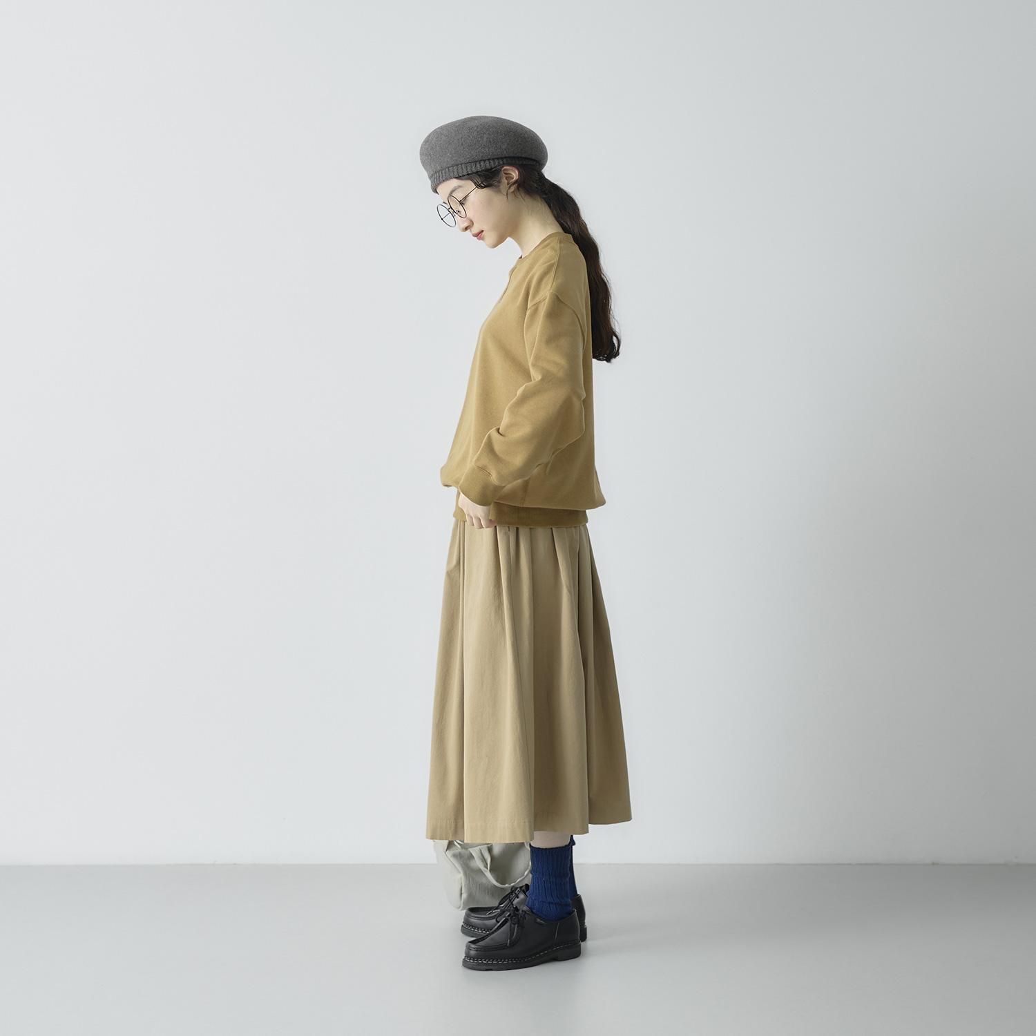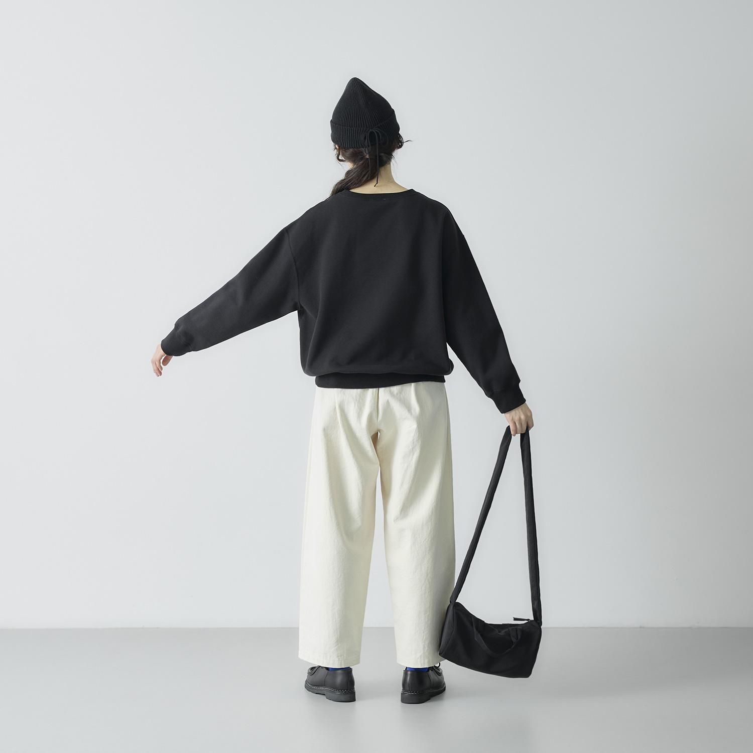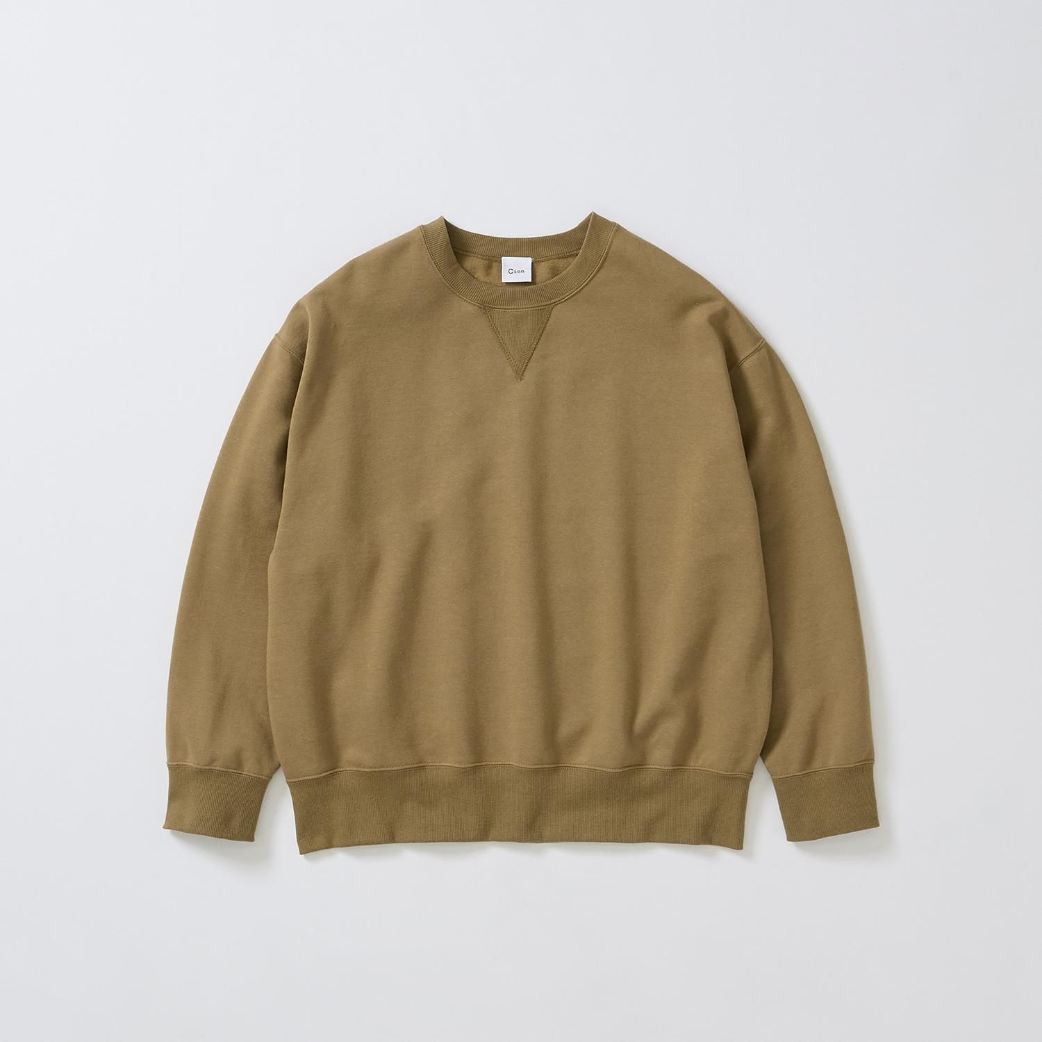暖かさがありながらも生地自体は軽く柔らかで、アウターを着てもごわつきにくいスウェットです。
