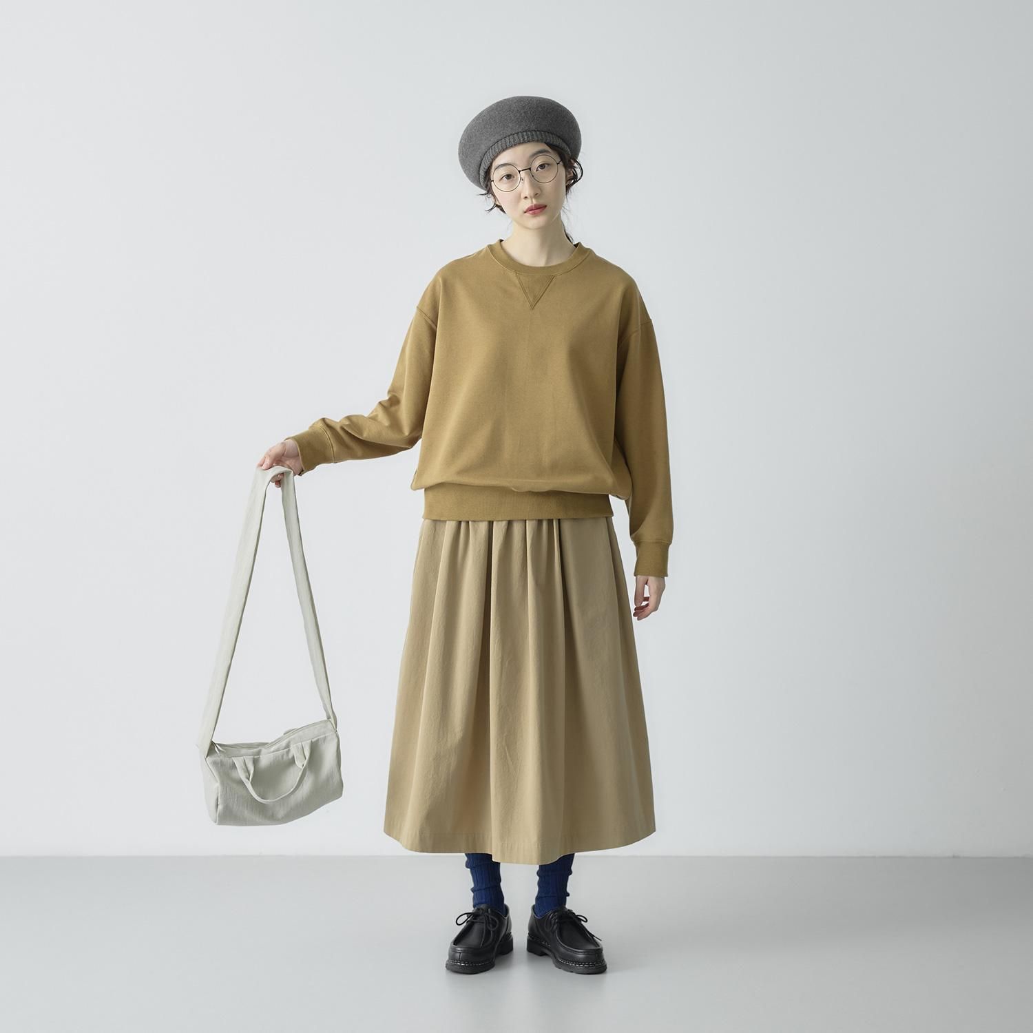 裾のリブで丈感を調整しやすく、スカートにもパンツにも合わせやすい1着。