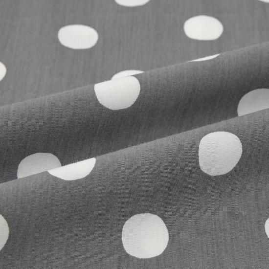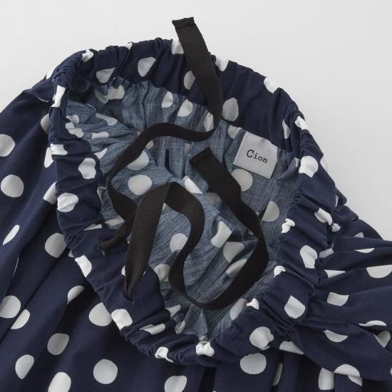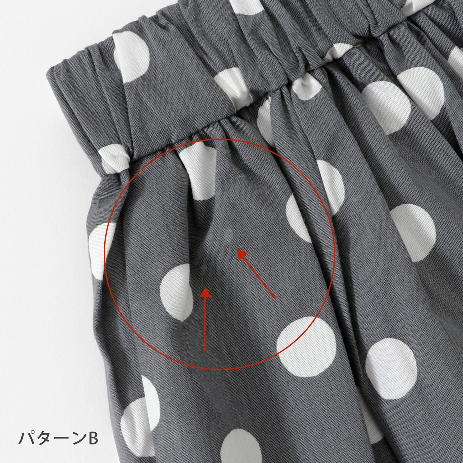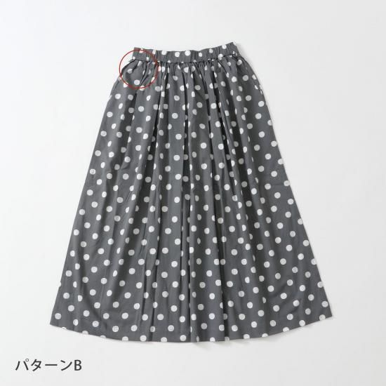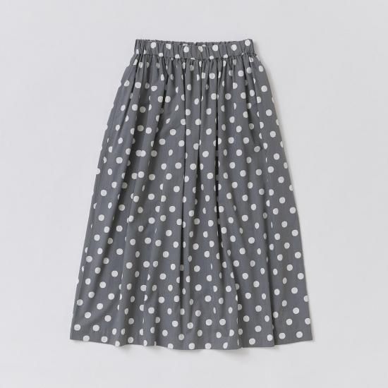 環境に考慮したコットンレーヨン生地を使用したドット柄のギャザースカートです。