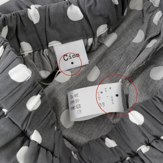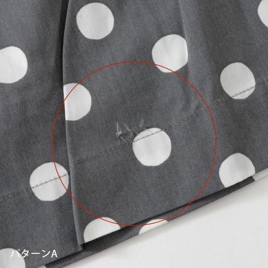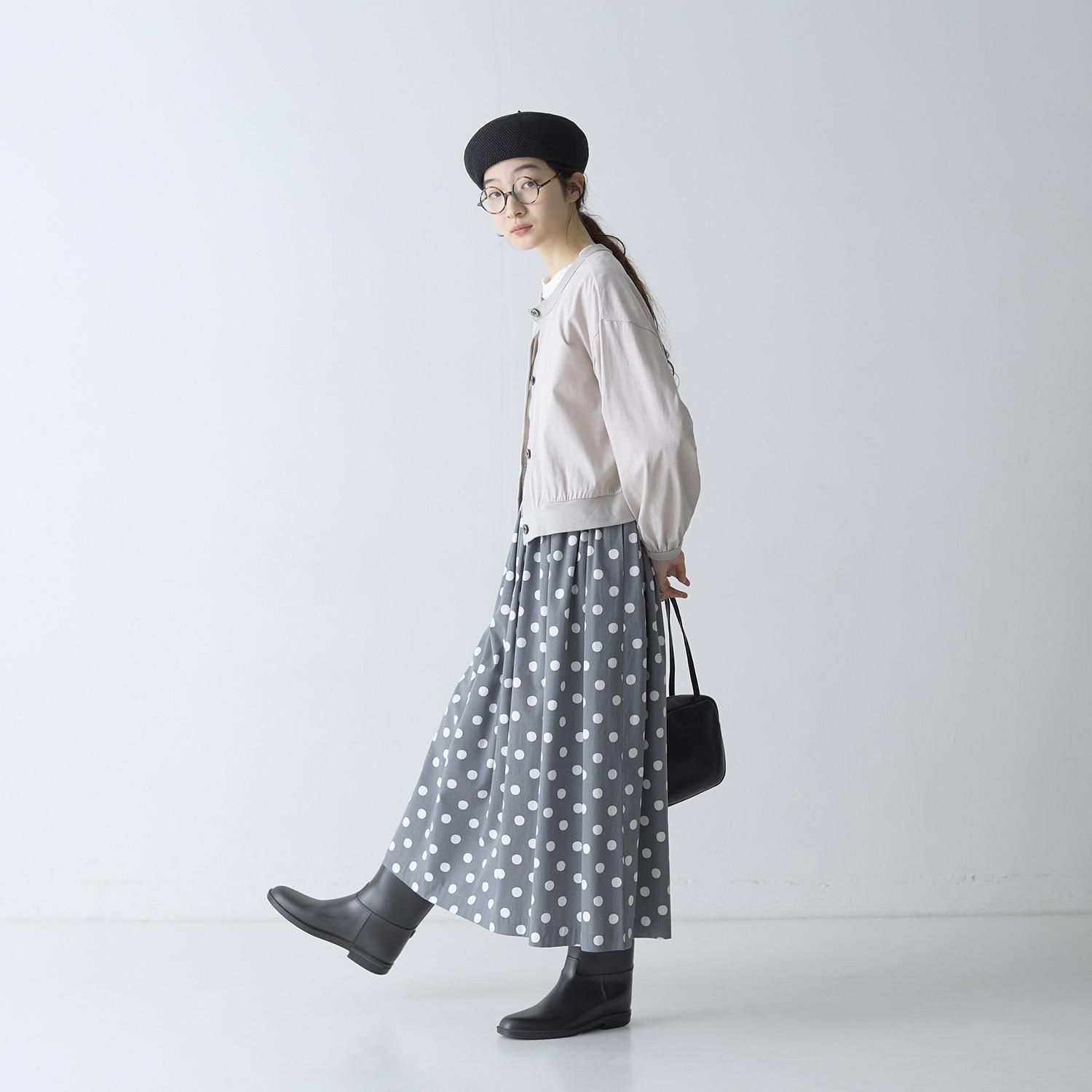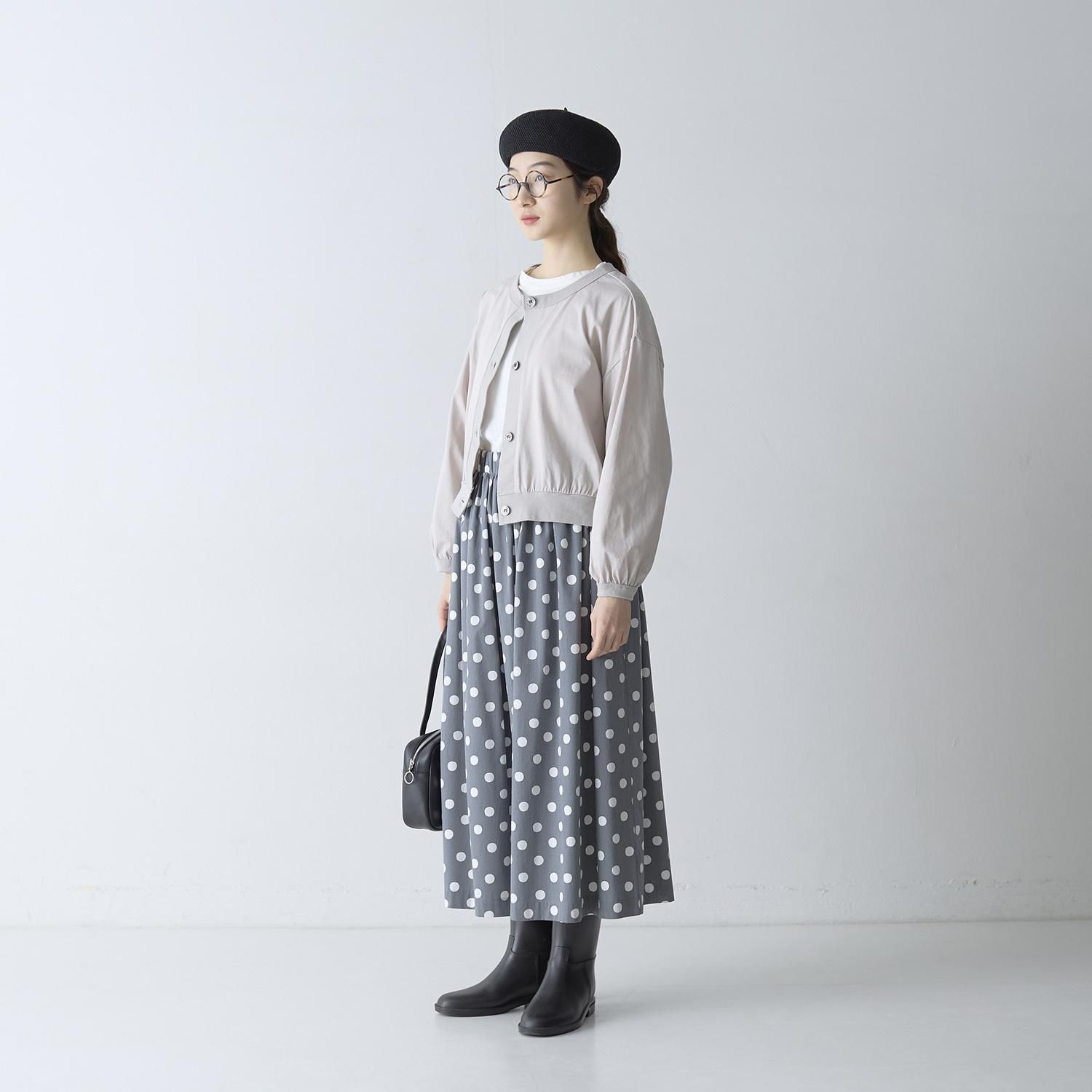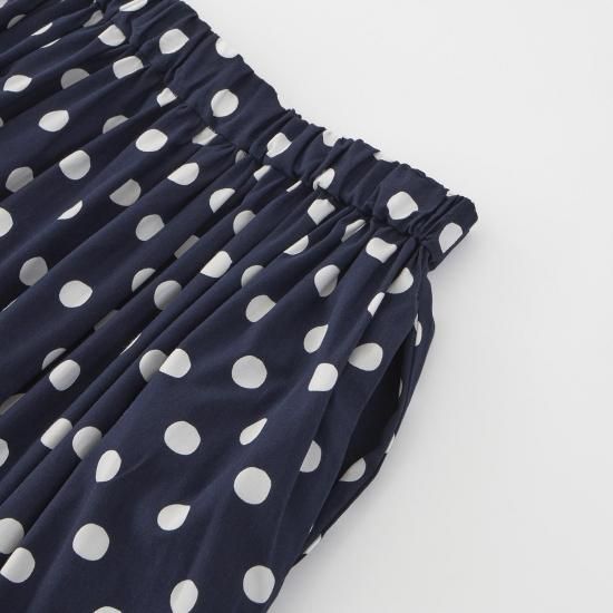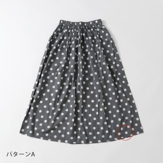 環境に考慮したコットンレーヨン生地を使用したドット柄のギャザースカートです。