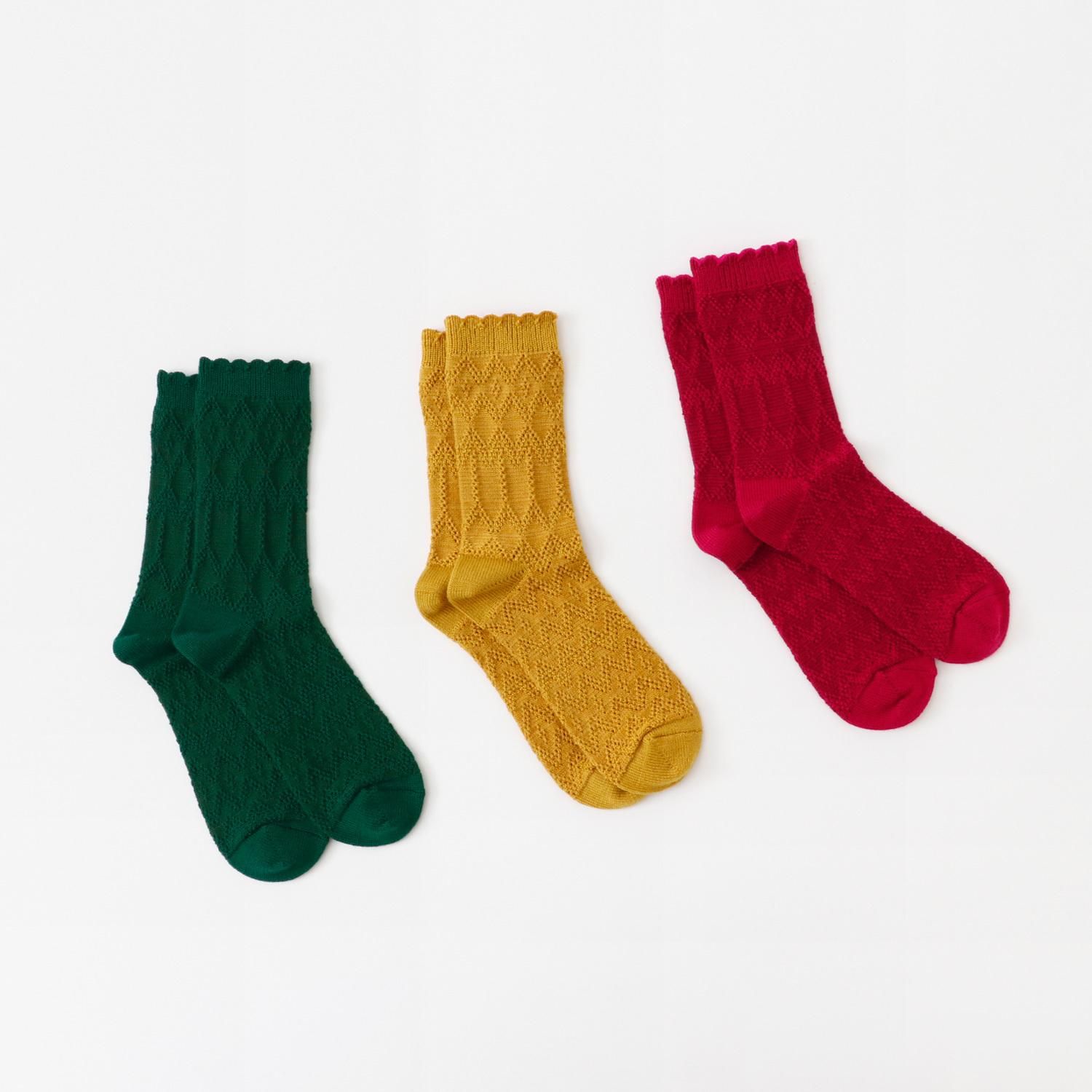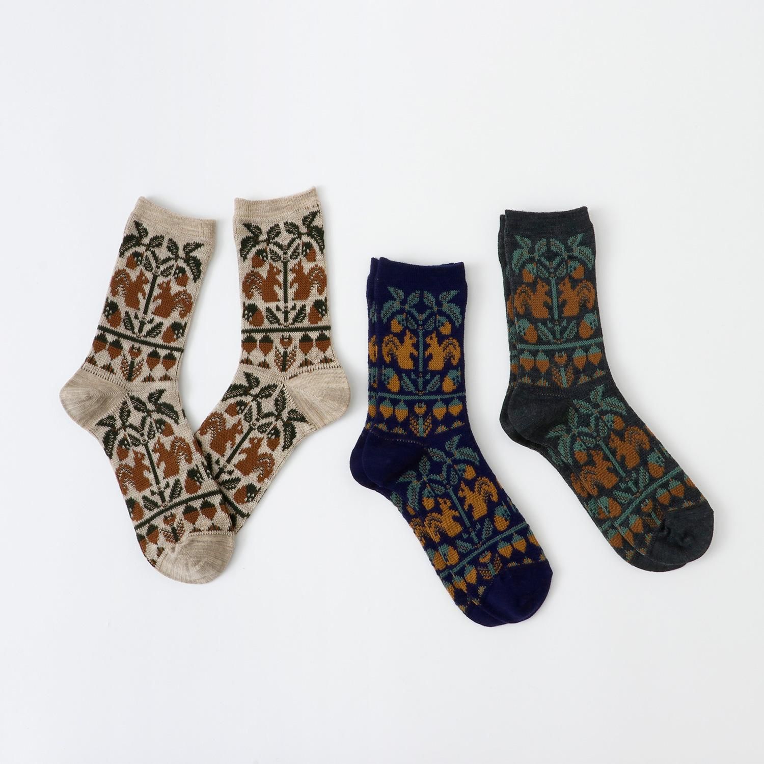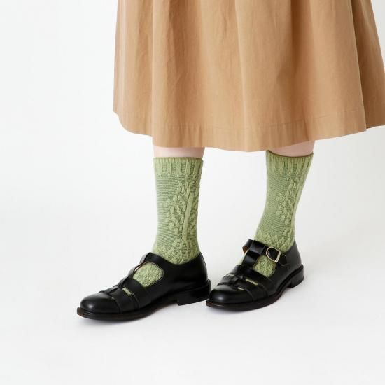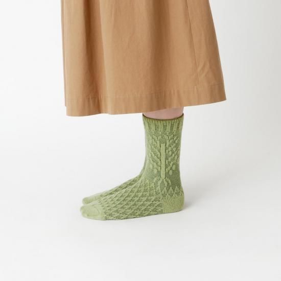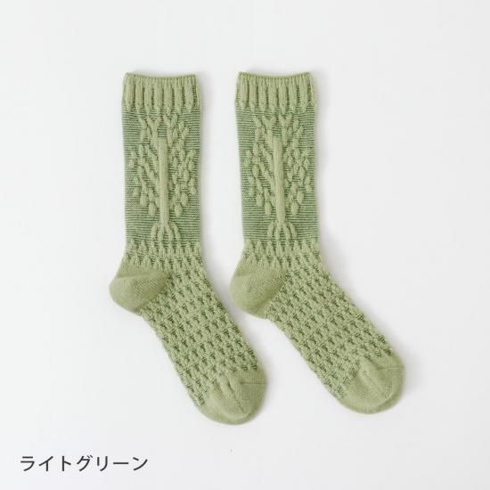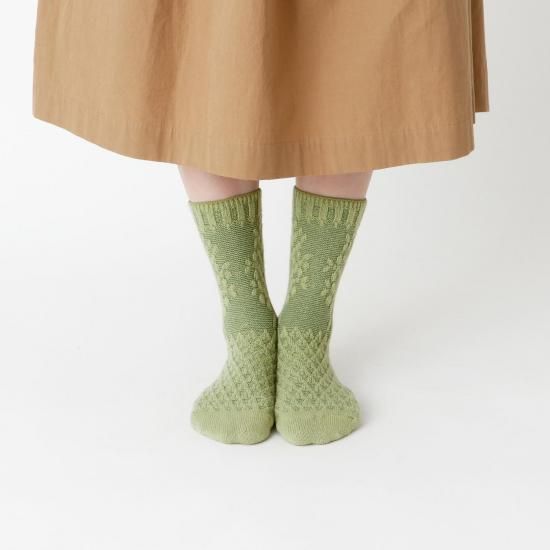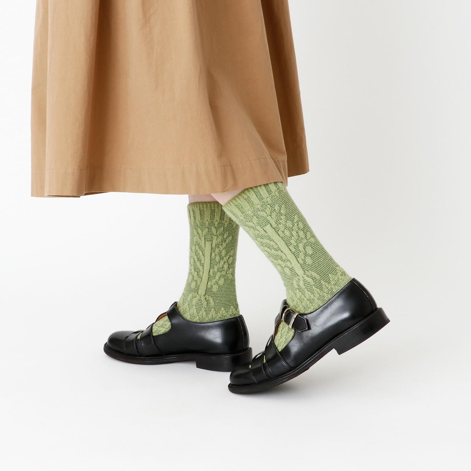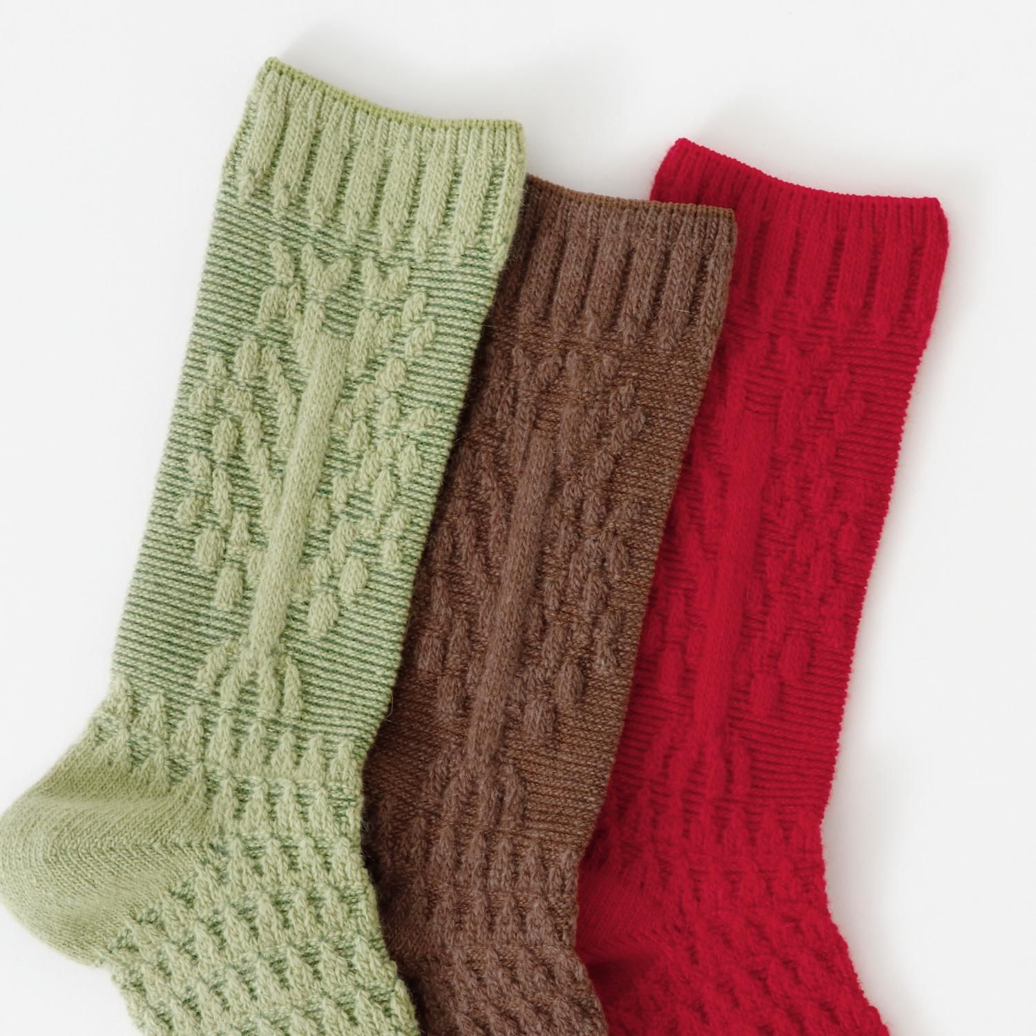 編み柄で表現したりんごの木はさりげなく、シンプルなソックスが好きな方や、柄物を履かない方にも取り入れやすいデザインです。