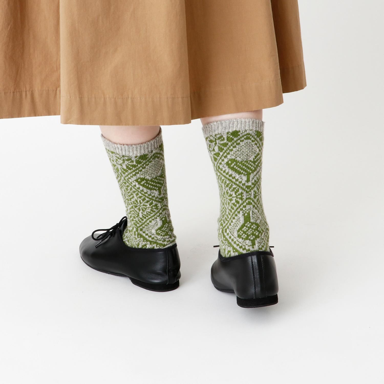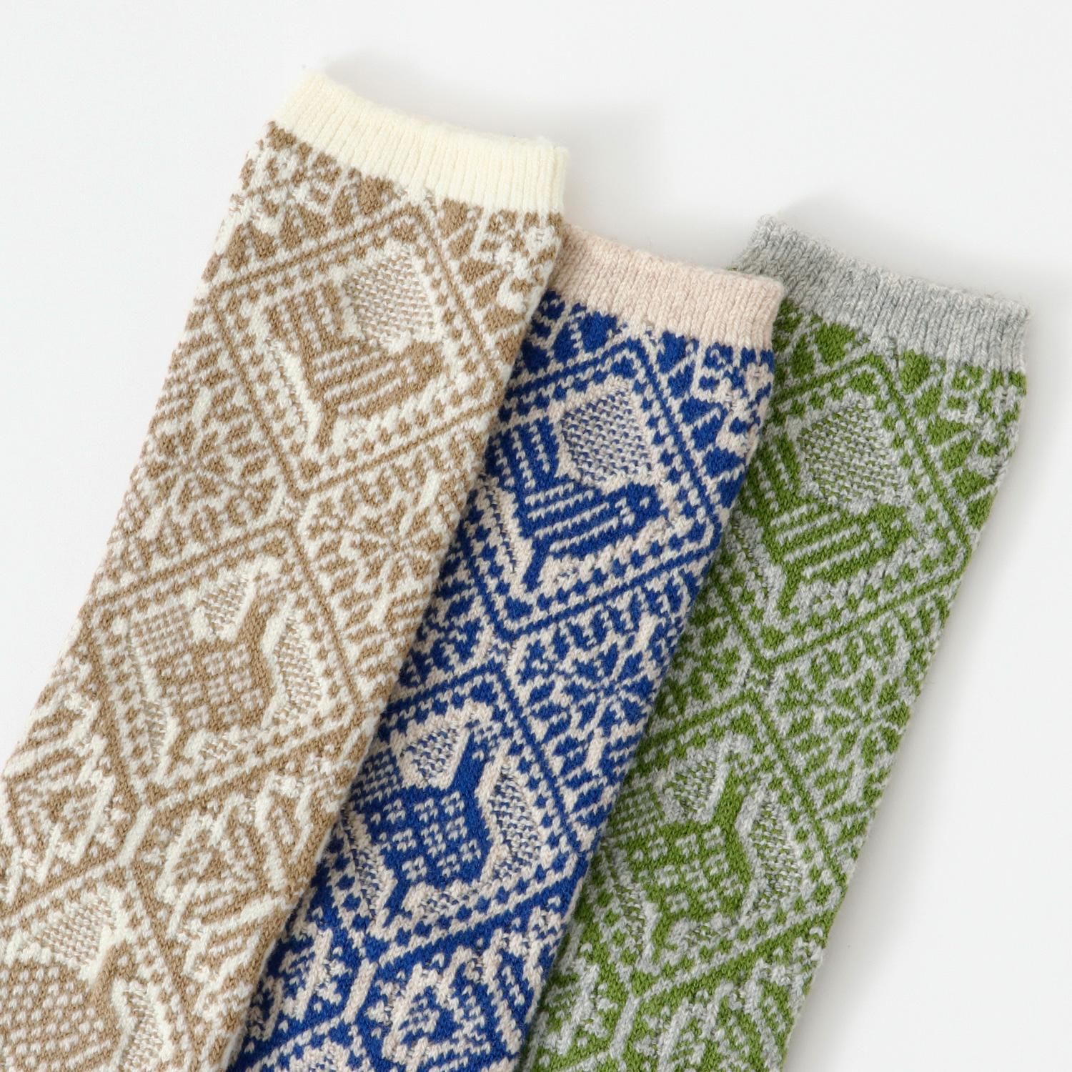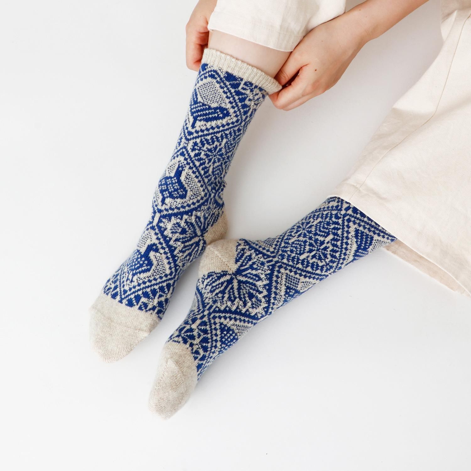 鳥のジャガード柄のソックスです。