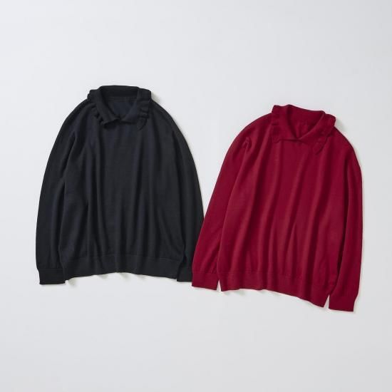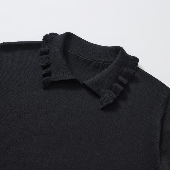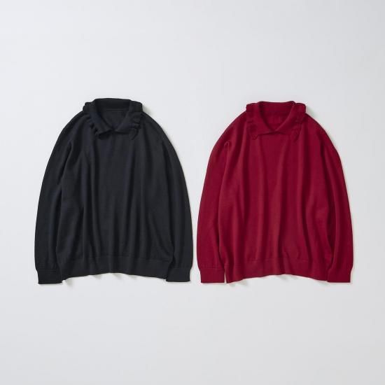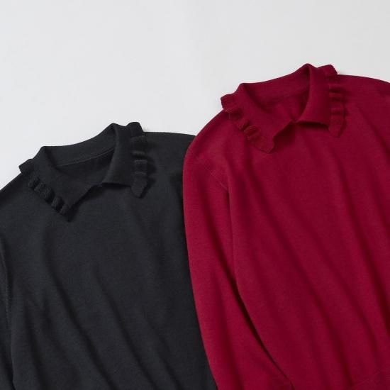 上質で滑らかな肌触りのメリノウール糸で編み立てたポロニットです。