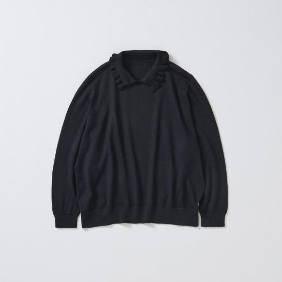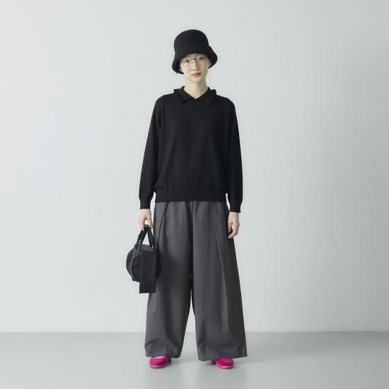 襟先にひと工夫。1枚でサマになるメリノウールポロニット。