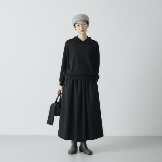 ニットの中でも薄手で軽やかな生地感のため、ワンピースやベストと重ねても◎