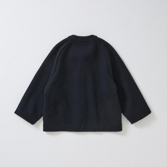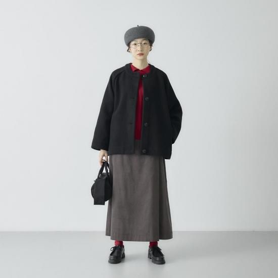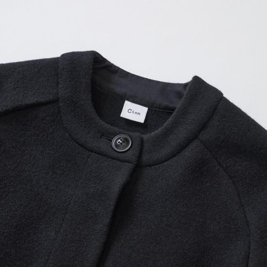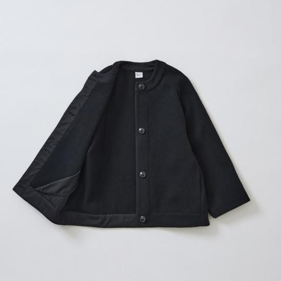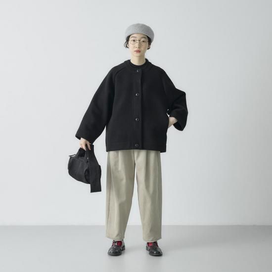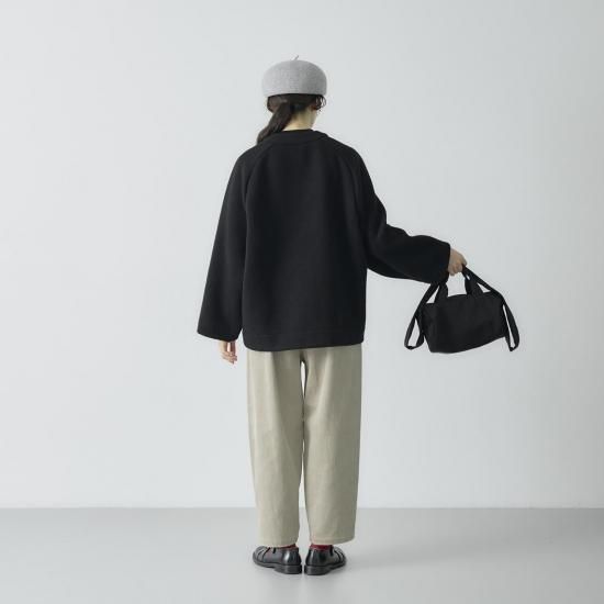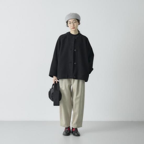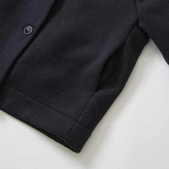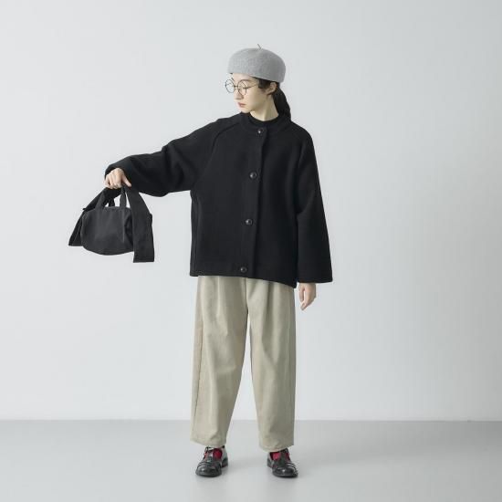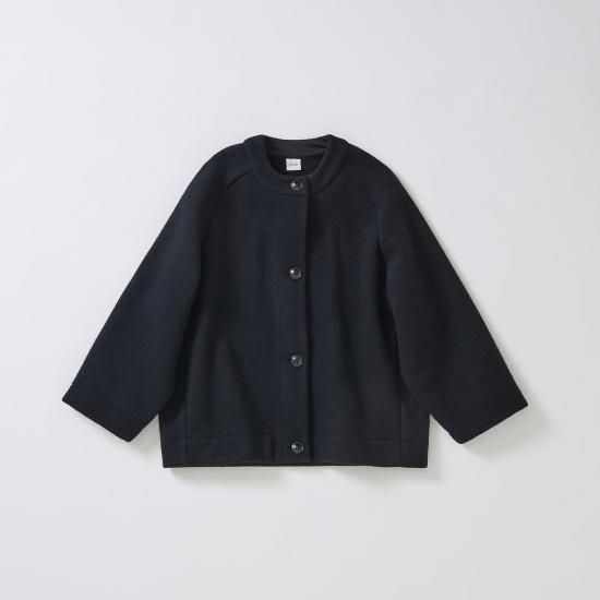 起毛感と膨らみのある、ソフトで軽いリサイクルウールのメルトン生地を使用した、ラグラン袖のショートコートです。