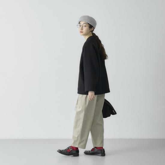 ラグラン袖のゆったりとしたアームホールで、スウェットやニットなど厚手のトップスでも肩周りが苦しくなく、着脱しやすく仕上げました。