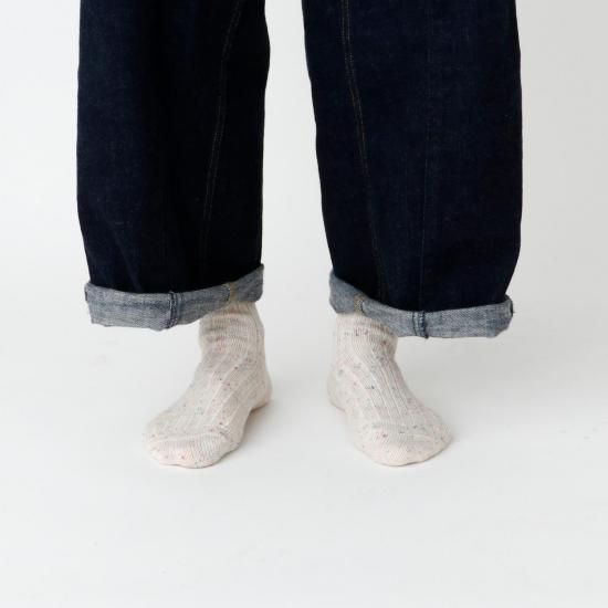 カラーネップ糸がポイントの、素材感が活きたソックスです。