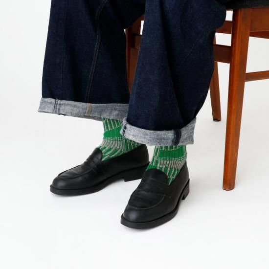 | 注意事項 | ・French Bull・jake・Cionの製品は、綿・麻・ウールなど天然繊維を多く使用しています。 そのため、素材や色によって長さや幅に個体差が出る場合がございます。 ・靴下の特性上、色や柄の切り替え部分や、履き口のゴム部分は糸の端末が裏側に出ています。 着用やお洗濯によって、この糸端が表に飛び出してしまうことがあります。 この糸を切ってしまうと、ほつれの原因になりますので、切らずに内側へ入れ込んでください。 |
