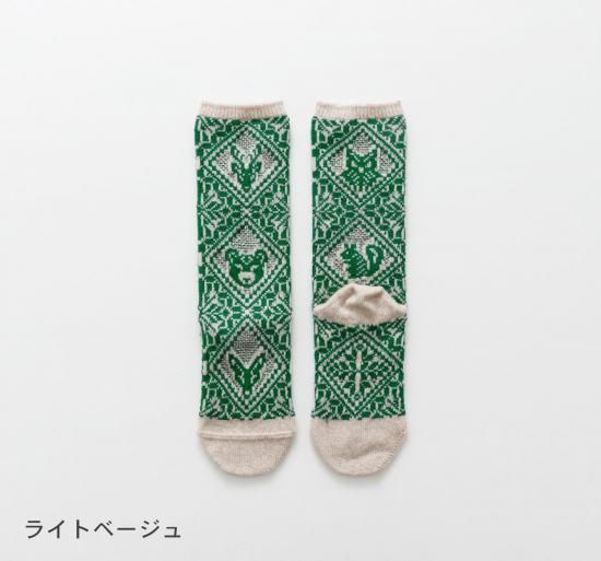 動物たちが暮らす美しい森をイメージして作ったソックスです。